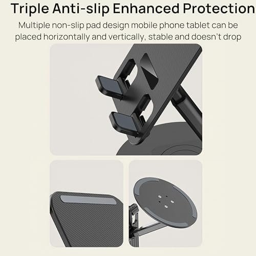 [360° ROTATABLE]: AnHome phone stand for desk features a full 360° rotation, allowing you to adjust the viewing angle to your preference effortlessly. Enjoy hands-free comfort whether you’re watching videos, video calling, recording, phone stand charger or sharing your screen.