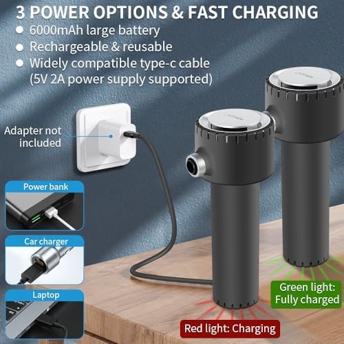 【3A FASTER CHARGING AIR DUSTER】This air duster features 6000mAh battery and a type-c faster charging cable to back it up,supporting 1-2A charging. The availability of 2A charging reduces the charging time down to 2.5 hours. This duster is to save you out of low-efficienct cleaning by most usb designs, which charged longer but work just one or two times(Most USB designs cannot even reach true 40000rpm, so they work longer per charge, but just one cleaning job may run out of their juice).