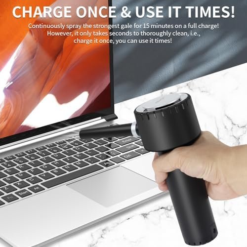 Weighs less, and measures smaller, ABVOT air electric duster is totally a handy duster at your maximum comfort when you use it. A full charge will free the air duster from limits of cable connection to allow for cordless use, thus moving it here and there and dust everywhere.