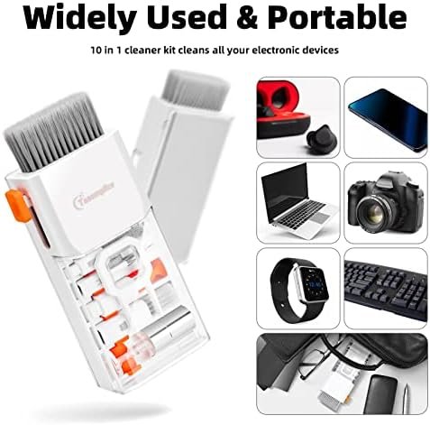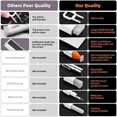 MULTIFUNCTION IN ONE GADGET Mini soft brush and Soft plastic lens cleaning pen is especially designed for DSLR camera screen, lens and other delicate surfaces. 5 more cleaning cloth of it supplied for replacing. The flocking sponge is an excellent tool for cleaning headphones charging cases, while the metal pin tip and high-density brush are ideal for cleaning the sound outlet holes on earbuds. Keep your smartphone, camera lens, laptop, headphones and other electronic accessories clean