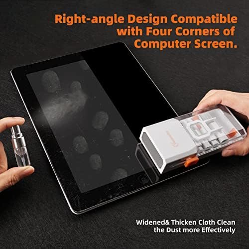 SCREEN CLEANER TOOL Use our recyclable cleaning spray, wipe with the 2mm thicken and widen polishing cleaning cloth designed at a right angle for better fitting the four screen corners of computers, it effectively absorbs stubborn stains, leaves zero discoloration, zero streaks, and no fiber shedding on the screens. High-quality microfiber cloths are extremely soft as well as durable, Stop risk scratching your expensive new phone or laptop screen with a cheap screen cleaner set