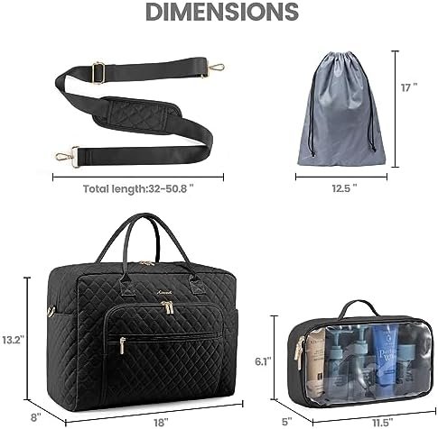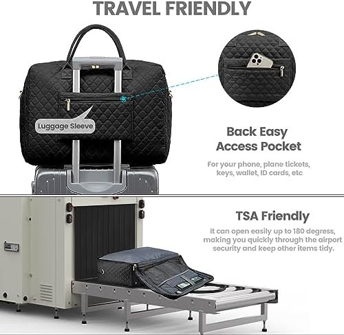 【STYLISH CARRY ON BAGS FOR AIRPLANES】: Demension- 18 x 8 x 13.2 inches, 1.95 Lbs, the LOVEVOOK duffle bag for women meets most international carry-on requirements. Fits in the overhead compartment as well as the under seat as Personal Items in flight. Integrated trolley sleeve slides over rolling luggage handle making airport travel a breeze. One back easy access pocket to hold your smart phone, ID cards or passport. Your ideal overnight weekend boarding bag for business or personal travel.