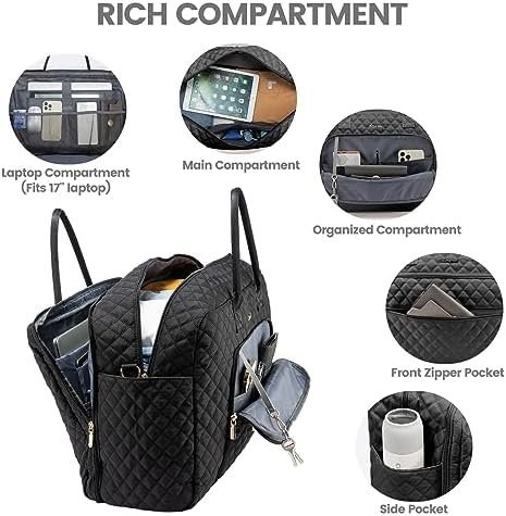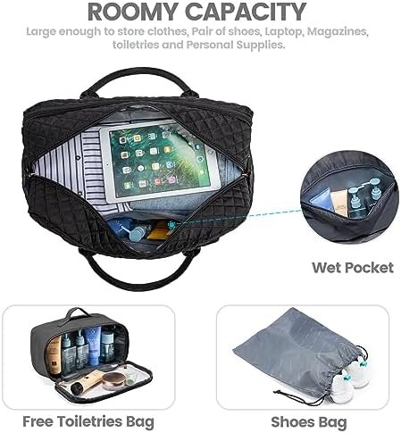 【MULTI-POCKET WEEKEND BAG & OVERNIGHT BAG FOR WOMEN】: Total 15 pockets to keep your personal items organized, roomy space can even fit in 2-4 days of daily essentials. 1 separate laptop compartment, 1 main compartment, 1 front organized compartment, and 2 side pockets provide multi-functional for your laptop, iPad, clothes, toiletries, shoes, and other items. Featuring with classy and gorgeous appearance, our travel duffel bags reach morden urban ladies greatest demand and fantasy on travel bag.