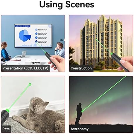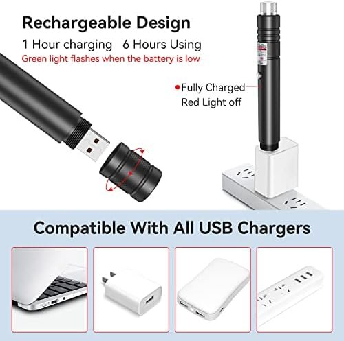 [Rechargeable Design] Green light flashes when the battery is low. Just rotate the lid off the bottom of the laser pointer and you can charge it, It is compatible with all USB-A chargers, Whether it’s a computer, a laptop, a phone charger, a power bank, or a plugboard, you can charge it with a USB port. Charge it for half an hour and you can use it for hours on end.