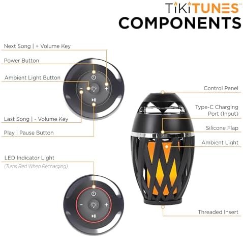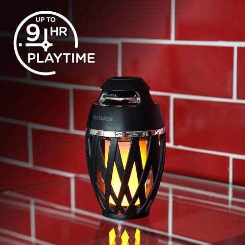 Up to 9 Hours of PlaytimeLED Flickering Flame 360-Degree Sound 5W Speaker IP65 Water Resistant2000mAh Lithium BatteryBluetooth 5.030ft Transmission Distance Threaded Insert for AccessoriesSize: 4” x 6.5”