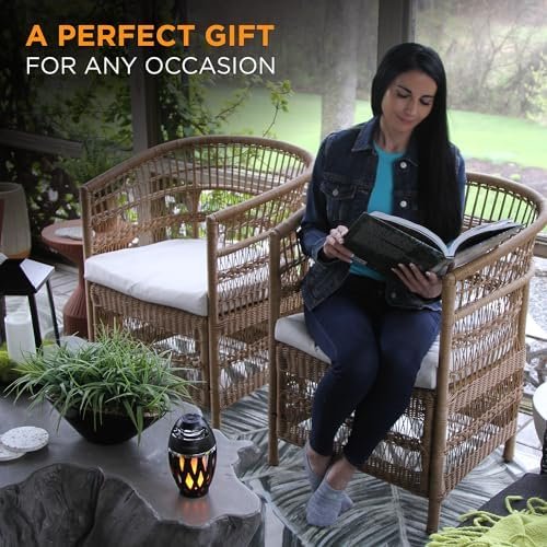 Emits a flickering, atmospheric light providing the perfect ambiance for evenings spent outdoors or a cozy night in.